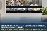 Jakarta, Newsline.id – Sekretaris Jenderal Kementerian Agraria dan Tata Ruang/Badan Pertanahan Nasional (ATR/BPN), Dalu Agung Darmawan, memberikan pengarahan dalam Rapat Kerja Daerah (Rakerda) Kantor…